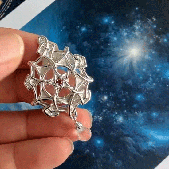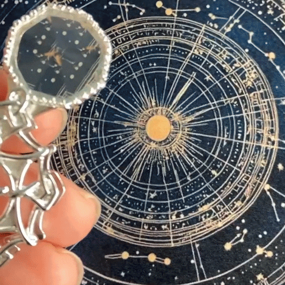 ペンダントには八角錐の水晶スコープが収納されていて、くるっと回して引き出す仕組みになっています。目の前の景色を華やかに変える様子は、まるで宇宙の神秘を映し出す万華鏡のよう。自然の中で感じるエネルギーを体感しながら、日常に特別なひとときをもたらします。幸運を求める方、スピリチュアルな体験をしたい方にぴったりのアイテムです。